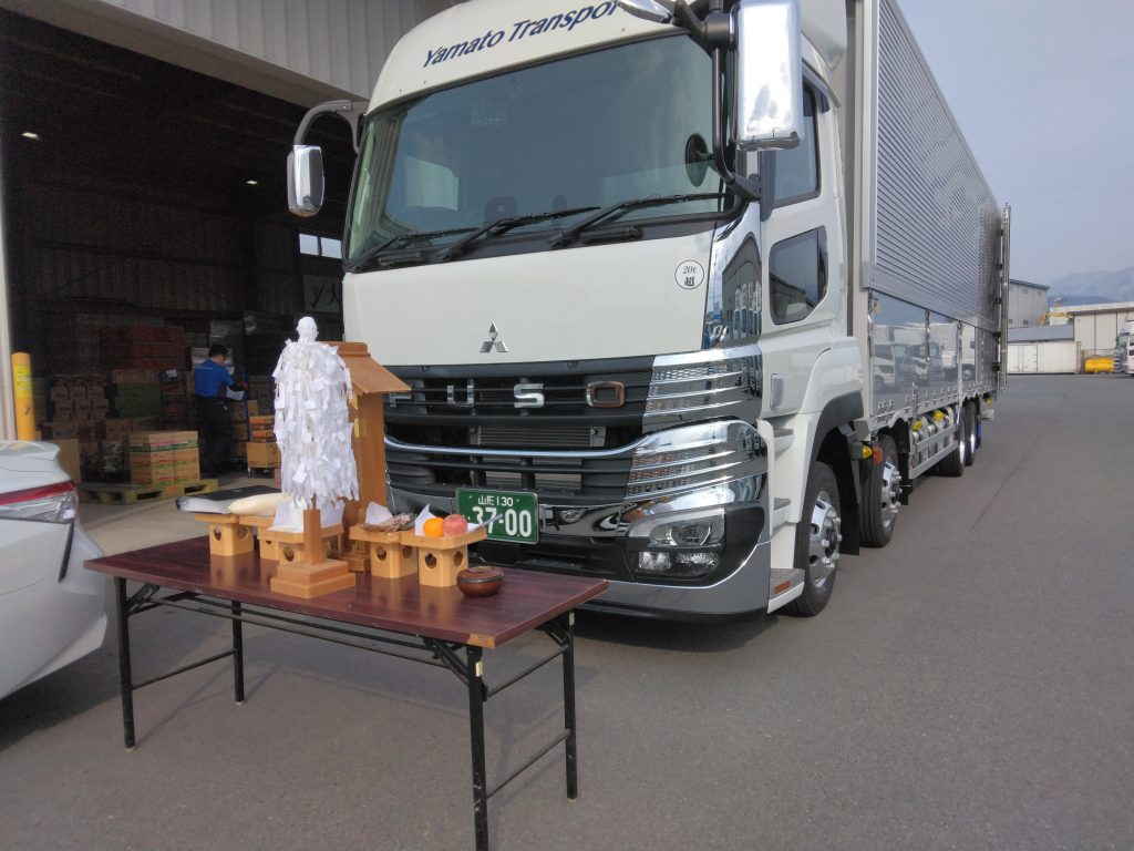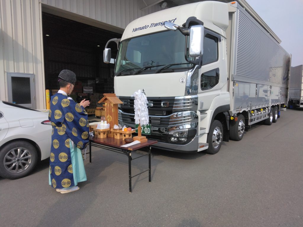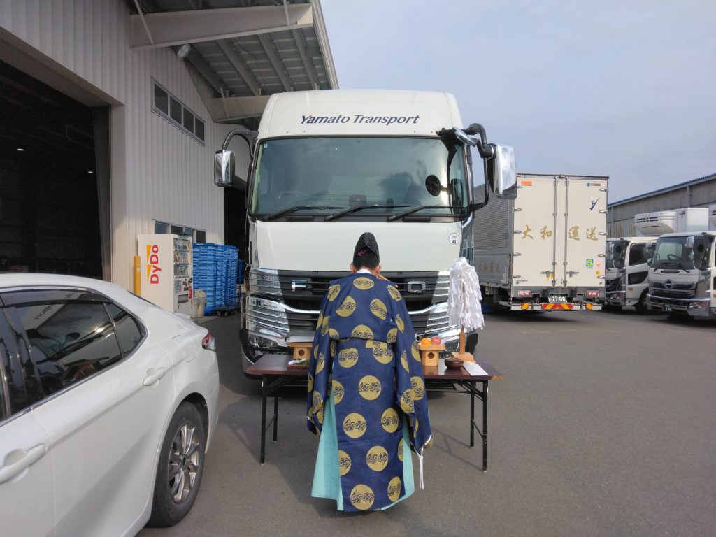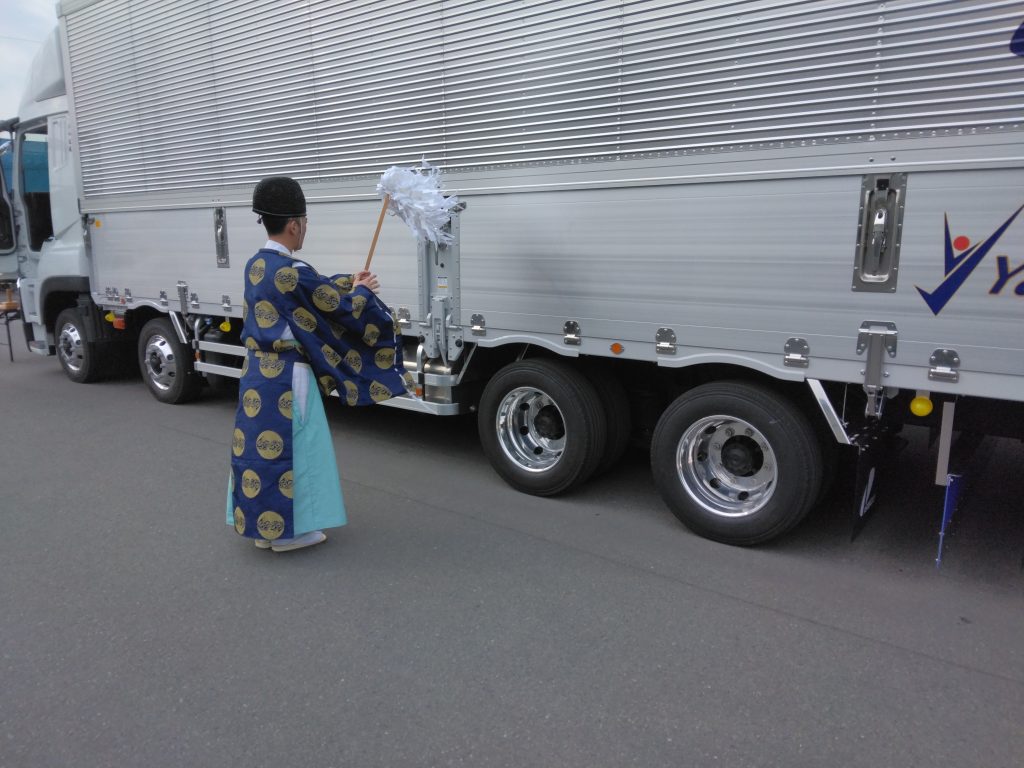 今後この車両の配送にかかわるすべての安全を祈願しお祓いをしていただきました。