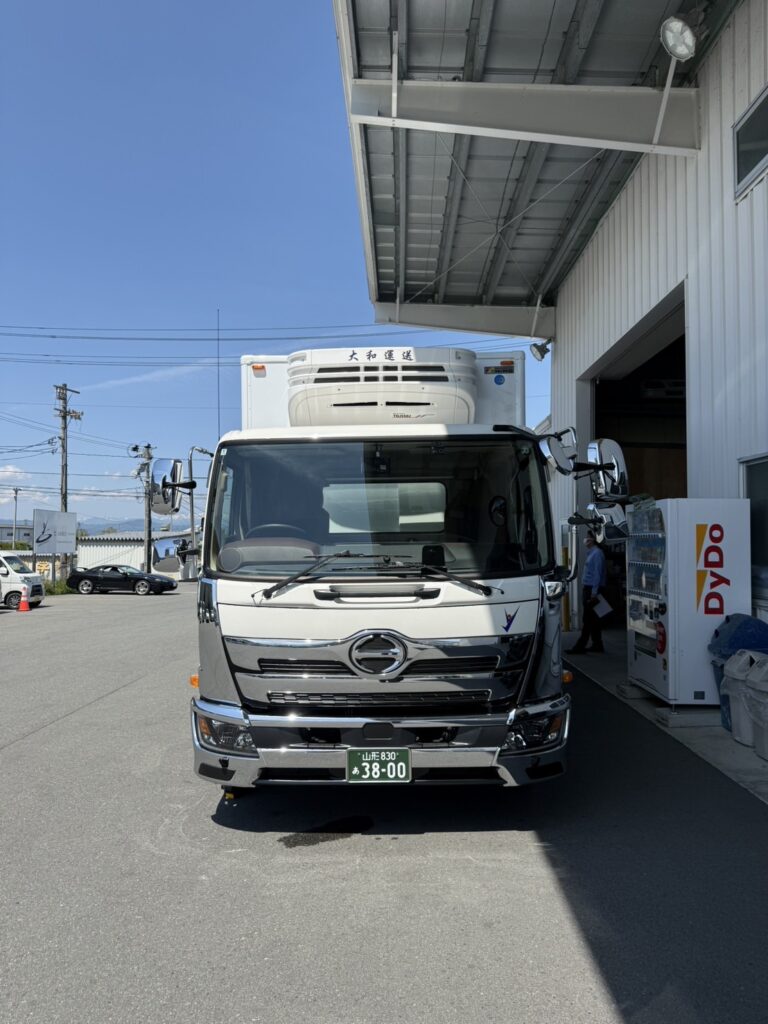 新車両導入しました(12) 車両 X Facebook LINE コピー 2025.05.302025.07.08 2025年03月27日(木)に新車両が届きました。 中型(4t)ワイド車で、エアサス・格納パワーゲート装備の冷凍車です。箱側面および後部観音扉の社名ロゴは新仕様5台目となっています。 近県まで県をまたいだ配送にフル稼働の予定です。
