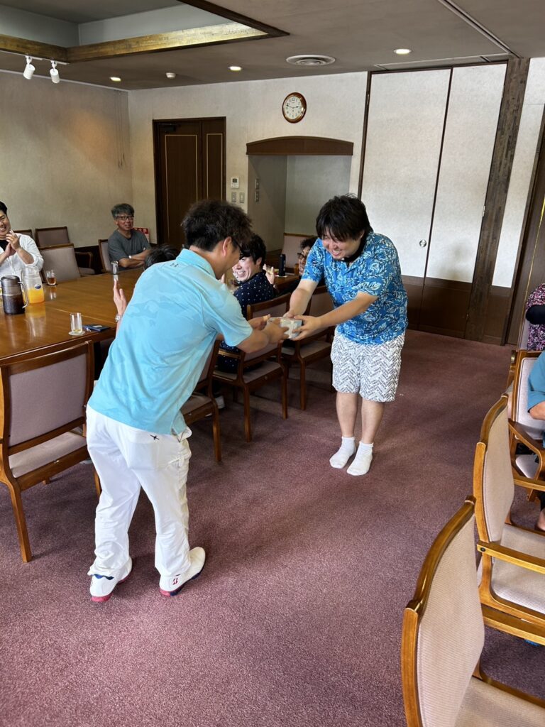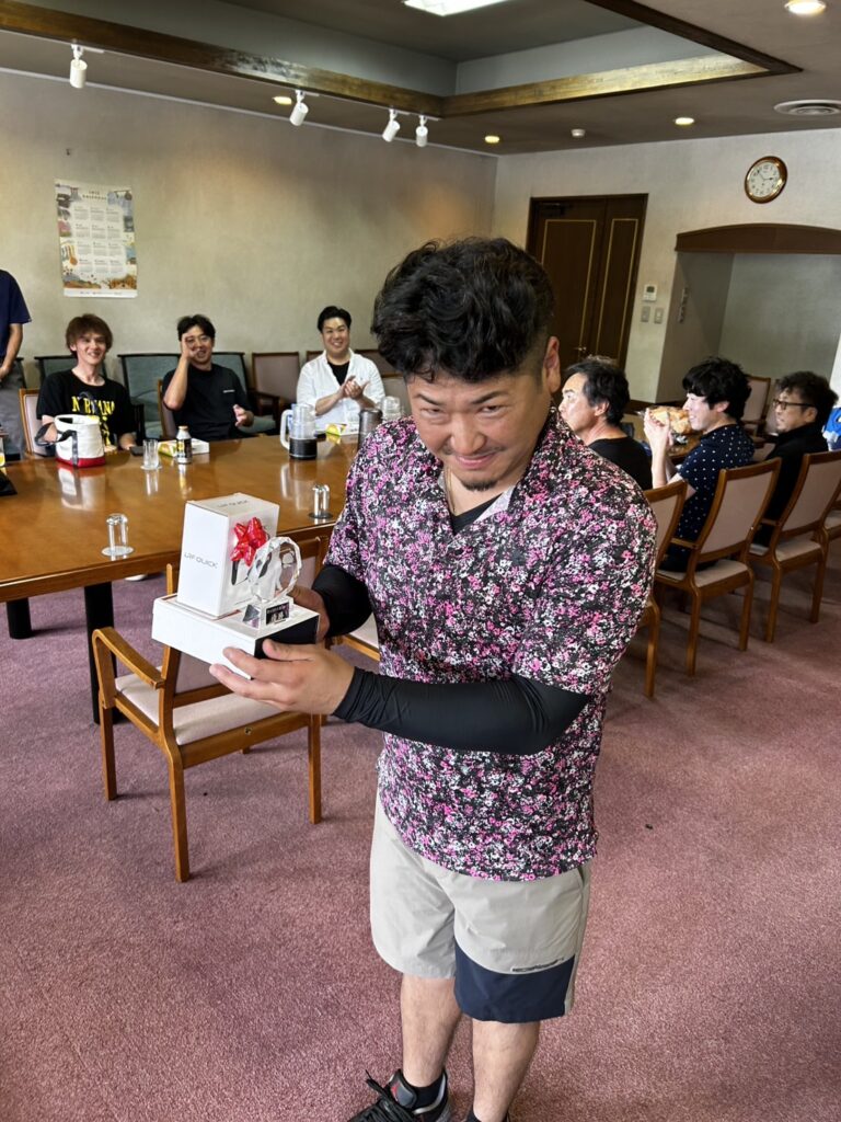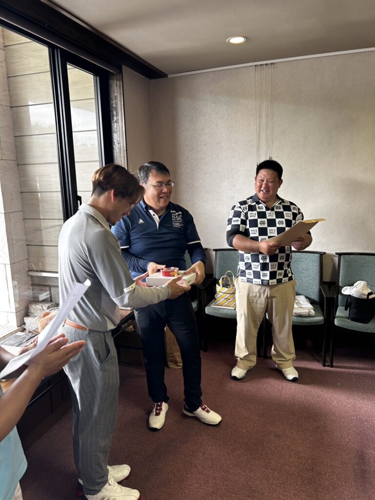 今回は大石田ゴルフクラブを会場に、予報では雨だったところ何とか雨が上がってレインウェアをぬいでプレーができ、各レベルでスコア争いが繰り広げられました。今回は第40回記念大会ということで、お取引先様から青年会議所つながりの方、従業員の友人の方まで広くご参加いただき、普段の数倍の規模で開催することができました。