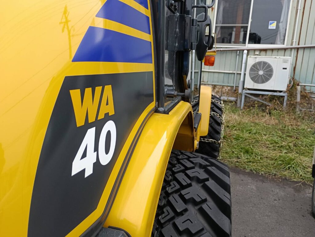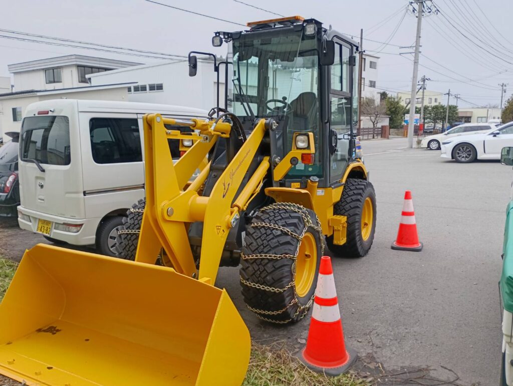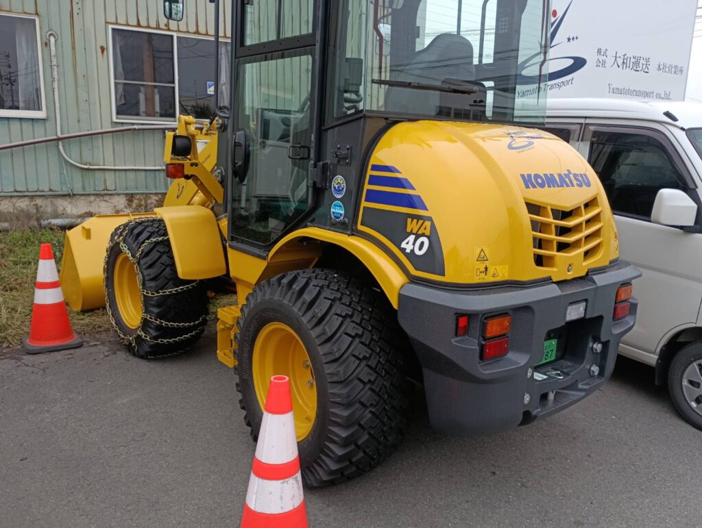 2025年12月17日(水)に新しい除雪車が届きました。KOMATSUのWA40、既存車両WA30と入替えの導入です。