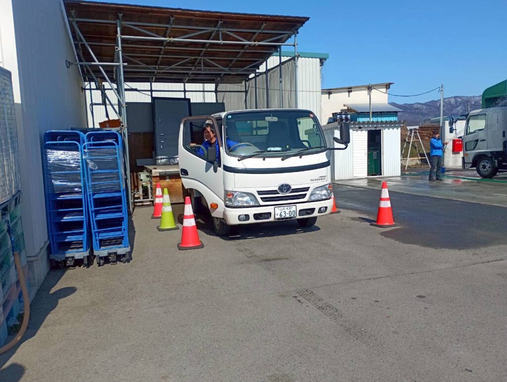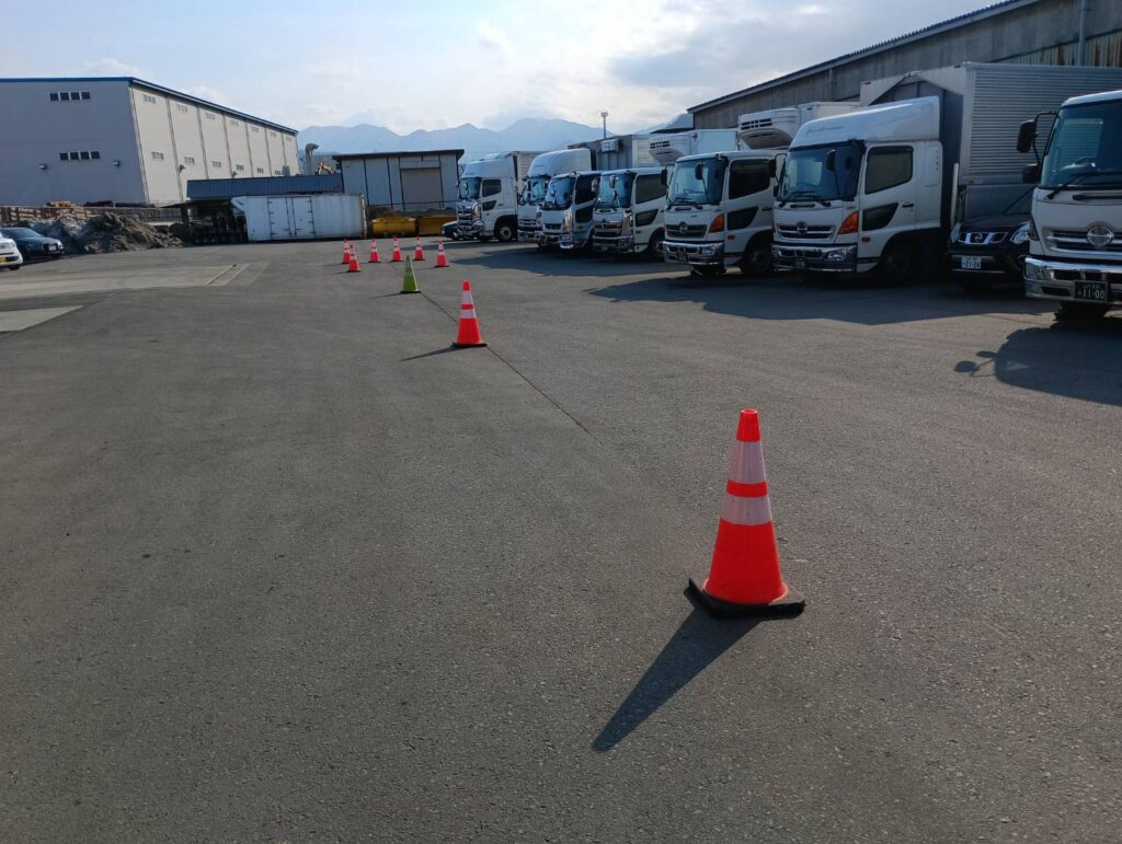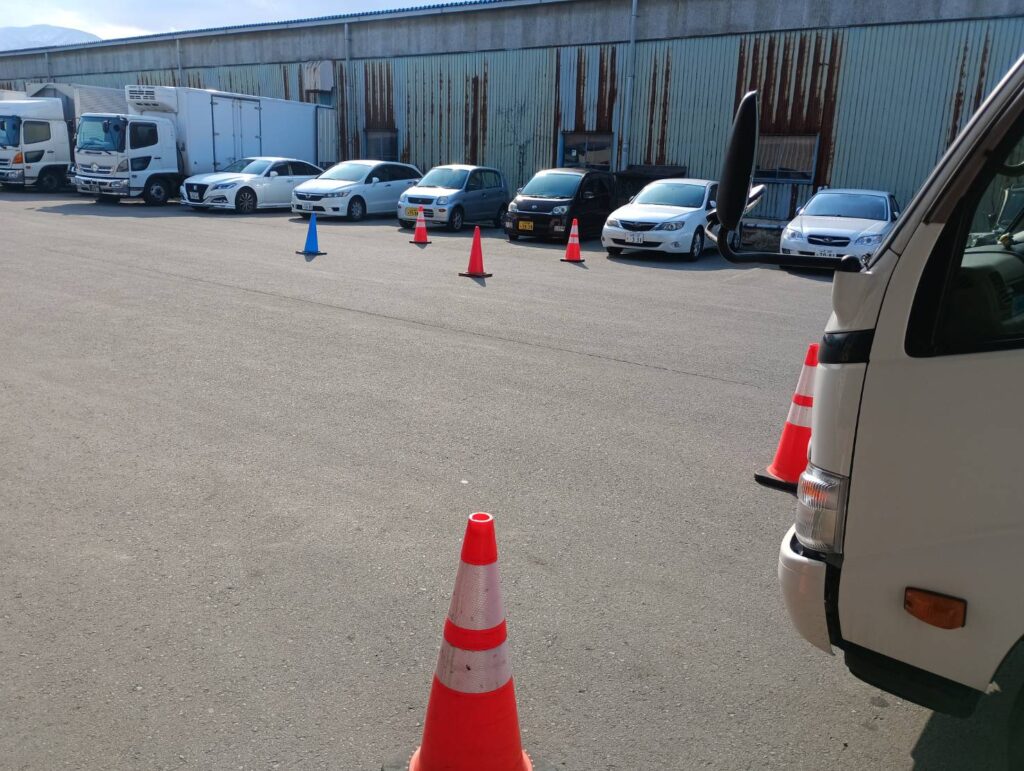 令和8年02月20日(金)、併催された「玉こんにゃくデー」に合わせて今年から新たに始めた取り組み『バック駐車上手い人選手権』を開催しました。会社が用意した車両でバック駐車し、誰が一番ギリギリまで寄せられるか(接触したら失格)を競います。年4回開催し、上位入賞者はポイントが加算されてランキングを競い、年間シリーズチャンピオン『最優秀バック駐車上手い人』に輝いた暁には忘年会の際に豪華賞品が贈呈されます。